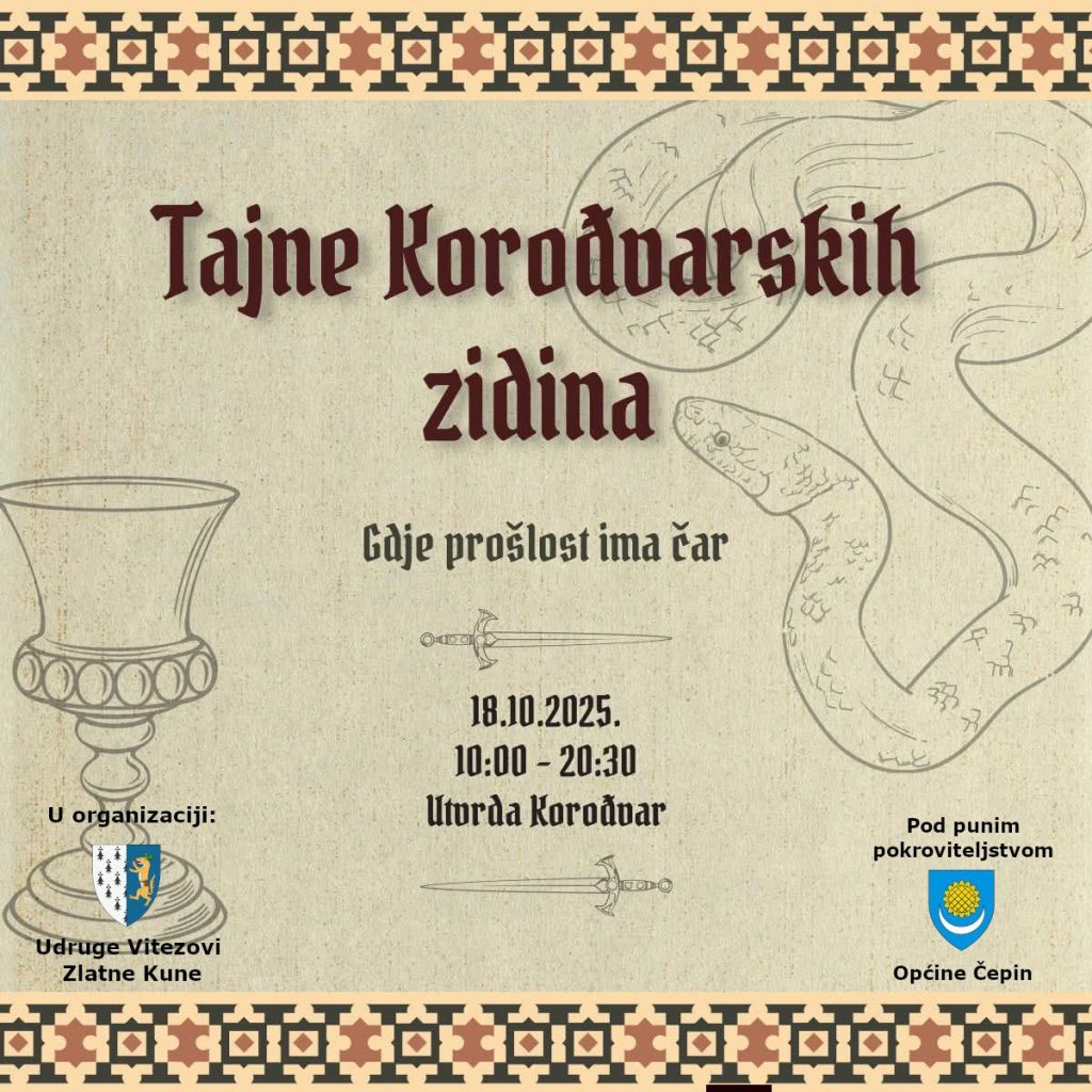 U čarobnom ambijentu Korođvara, pod okriljem njegovih drevnih zidina, prošlost ponovno oživljava i pretvara se u nezaboravno iskustvo za sve posjetitelje. Ovaj jedinstveni događaj donosi spoj povijesti, kulture i zajedništva, gdje svaki sudionik ima priliku postati dijelom legende koja se prenosi kroz generacije. Korođvar, mjesto gdje prošlost zaista ima svoju čar, na jedan dan postaje živopisna pozornica ispunjena pričama, emocijama i duhom minulih vremena, uz podršku i organizaciju Općine Čepin.